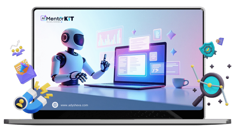 AI MentorKIT adalah e-course + toolkit praktis yang membantu kamu bikin kursus digital profesional dari ide mentah sampai video siap jual, tanpa perlu tampil di kamera atau rekam suara.